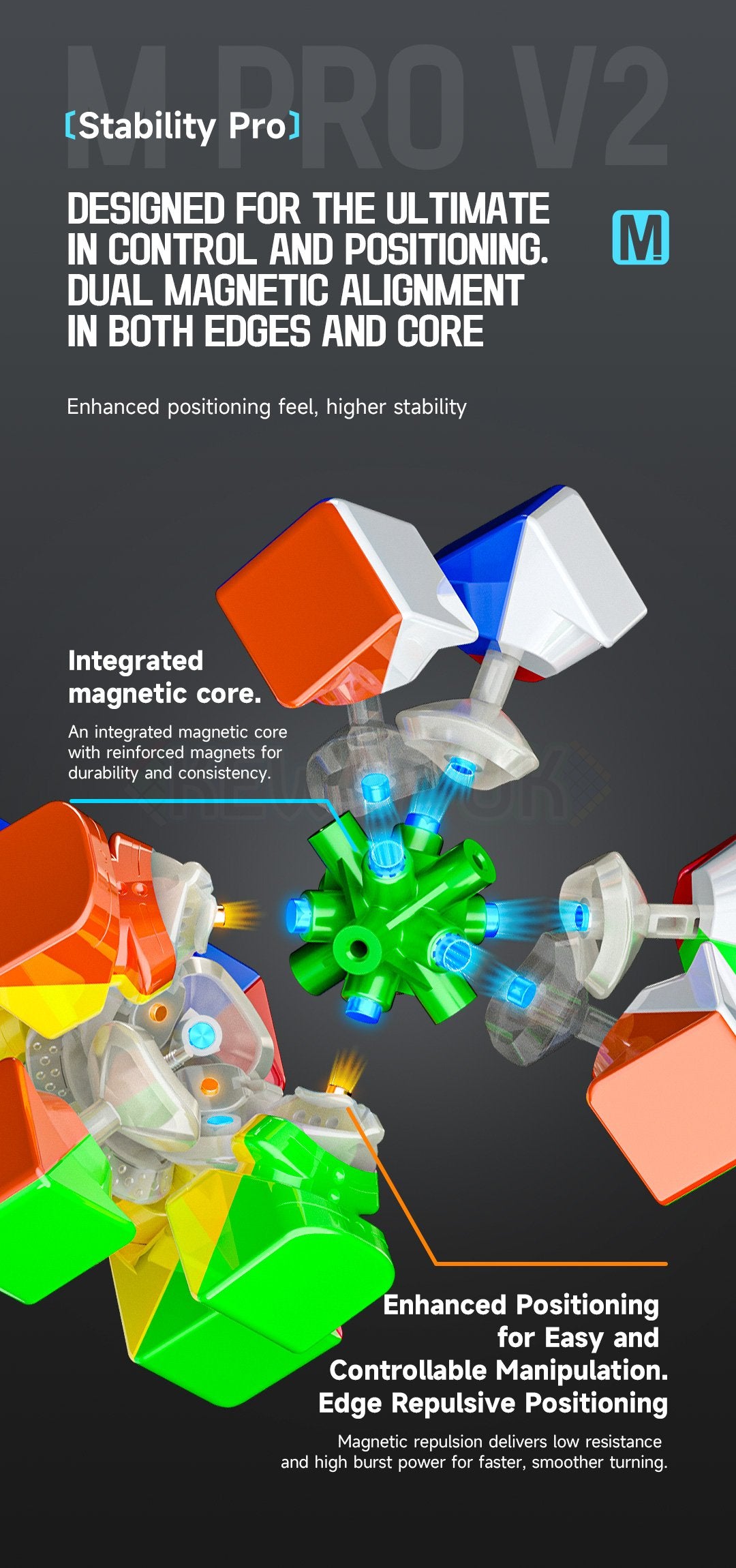 Introducing the QiYi M 3x3 Pro V2 Pioneer, added to Kewbz on December 4, 2024. This cube boasts features like magnetic pieces, maglev technology, and a ball-core, delivering a smooth yet brisk turning experience. The UV coating enhances grip, especially useful when your hands get a bit clammy. Many cubers appreciate its blend of speed and stability, and it's a solid choice for anyone looking to grow their collection.